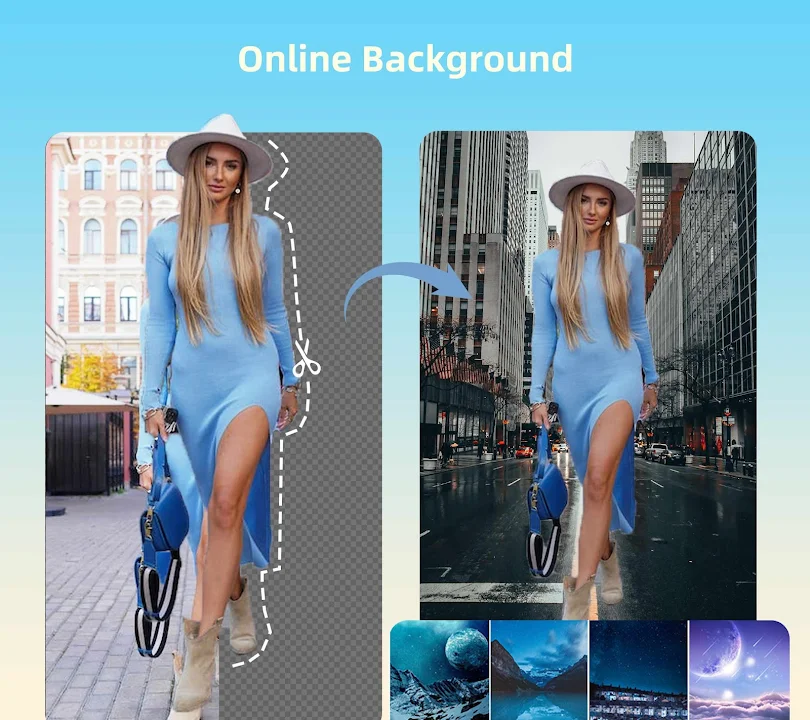 + 精确的背景橡皮擦和背景更换器,内置多种精美背景供您选择