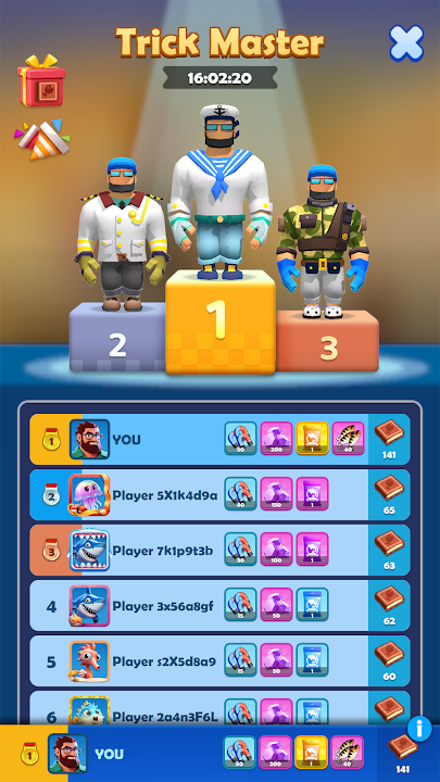Hire anglers and train them to improve the fishing efficiency. Upgrade the fish box to increase earnings and reduce the fishing time. With a team of skilled fishermen, you'll be able to sail further, and explore more impressive fishes. Don’t forget to equipping your anglers with advanced gears. They can not only increase the power of anglers but also increase the earnings.