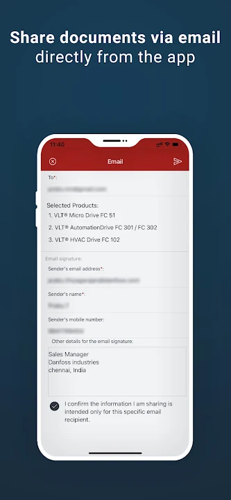 You can download or share documents via email, directly in the app. To send email for the first time, you will need to verify your request with a one-time password.
