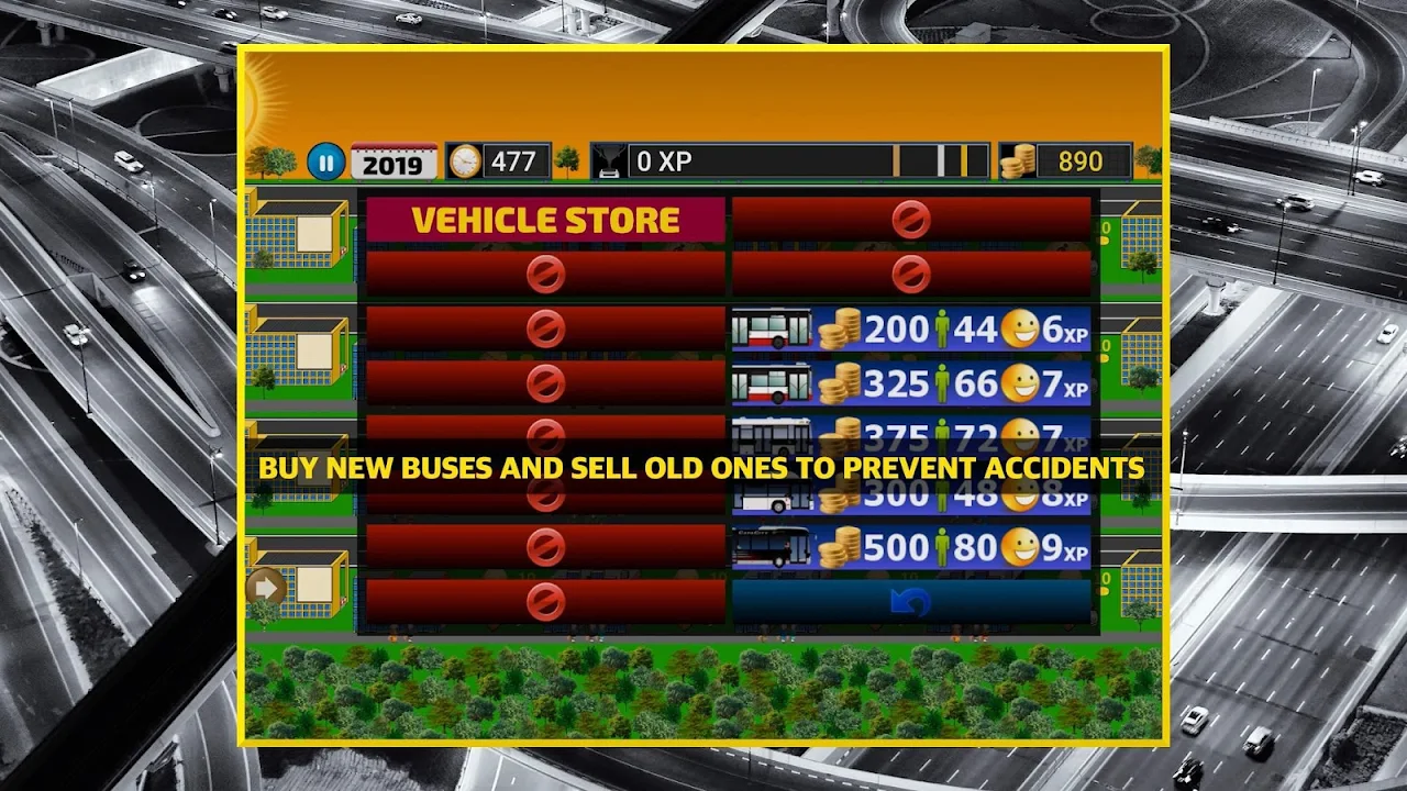 在时间耗尽前,尽可能多地在每个关卡中赚取经验值。每辆城市巴士的载客量不同,在运营期间,每位乘客获得的经验值也会不同,因此,请在签订合同前明智地选择购买哪款城市巴士。
