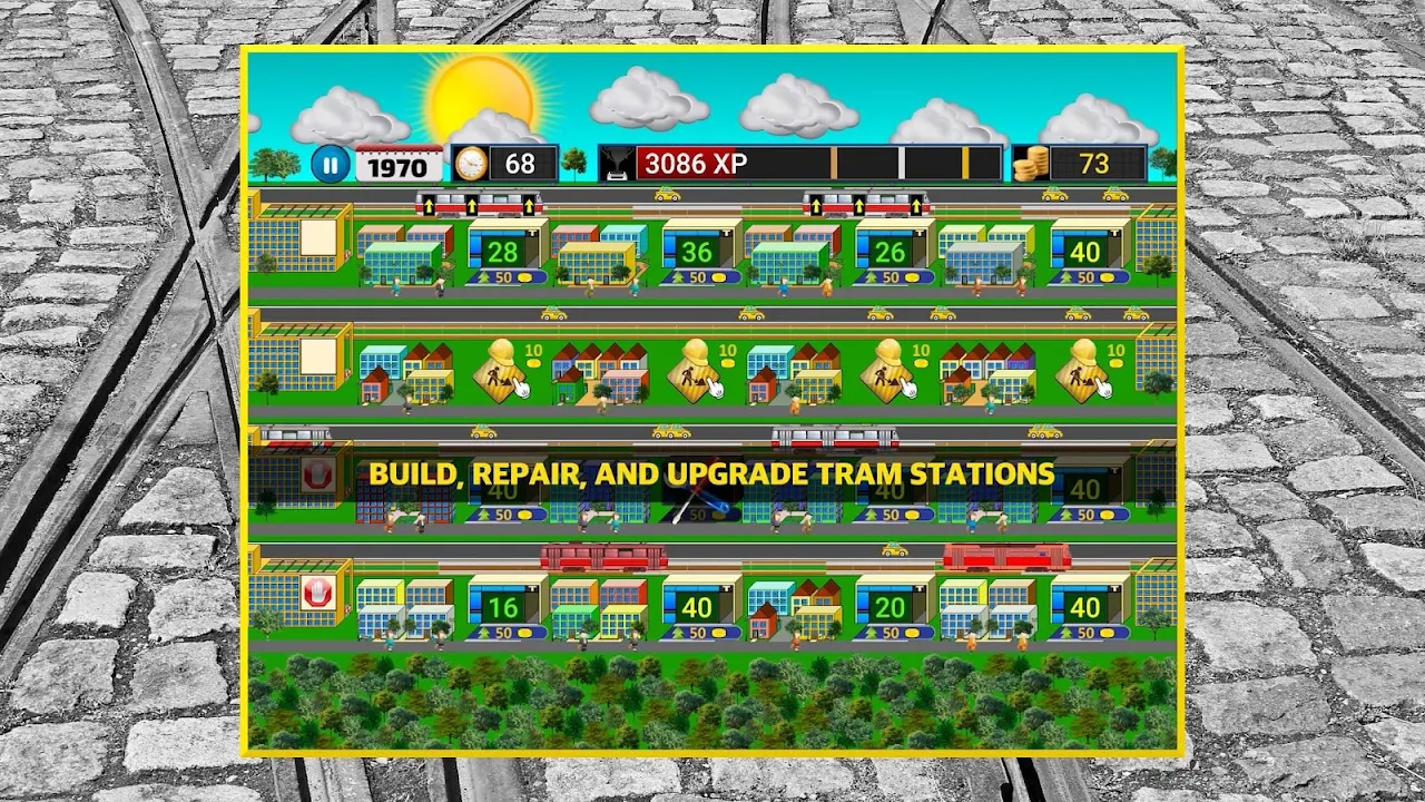 《电车大亨》是一款城市铁路运输时间管理策略游戏,您需要在时间耗尽前尽可能多地运送市民(不要让他们乘坐出租车)。您需要定期购买新的电车(电动城市列车),将它们送往合适的铁路线路,然后出售以替换旧车(预防事故),以发展您的小型快速交通业务。电车站也是游戏中不可或缺的一部分。您将负责建造、维修和升级每个城市火车站,当然还要负责您虚拟交通帝国的预算。