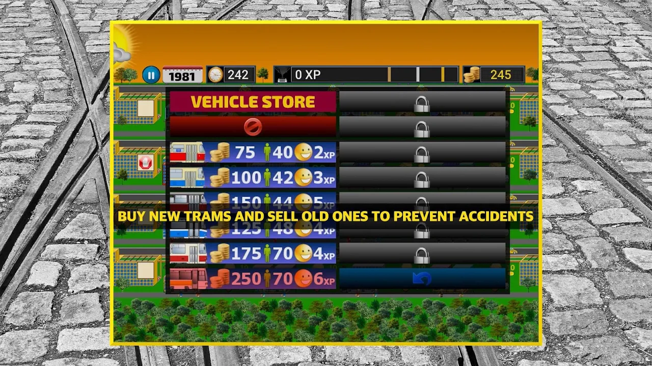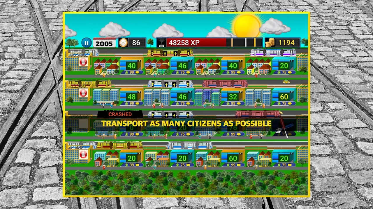 在时间耗尽前,尽可能多地在每个关卡中赚取经验值。每节电车的载客量不同,在运营期间,每运送一位乘客都会给您不同的经验值,因此,请在每次签订合同前明智地选择购买哪一节电车。