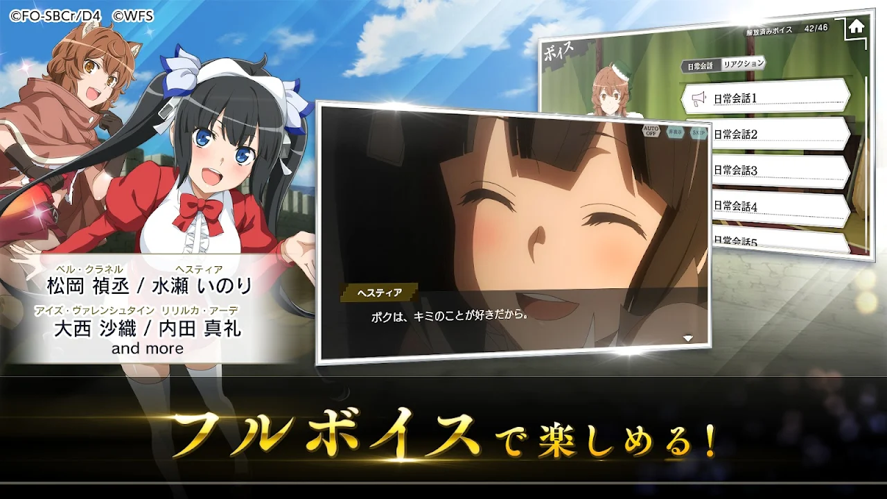 ・Full of elements to enjoy Danmachi even more, such as character list function, profile function, alarm function, etc.