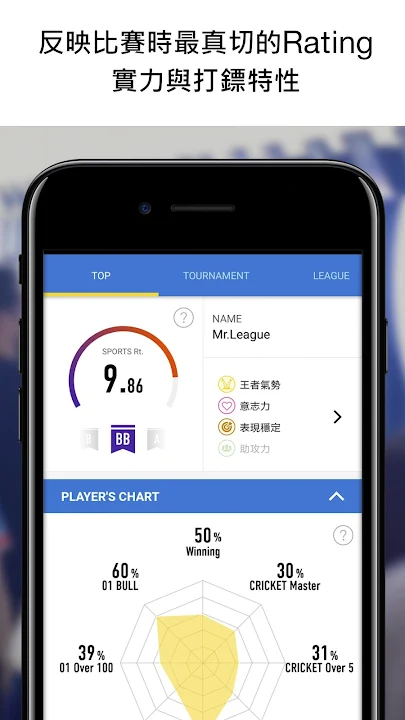 透過僅以大賽及聯賽結果算出的即時Rating「SPORTS Rating」,檢閱自己「真正的實力」及打鏢特性!