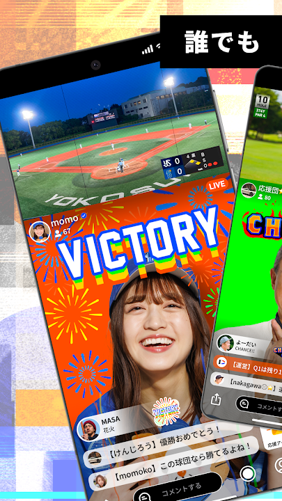 play-by sports 是一款體育直播支援應用程序,任何人都可以透過智慧型手機輕鬆觀看和觀看體育直播。您可以一邊免費觀看真實的體育比賽影片一邊歡呼。從前職業選手、偶像、喜劇演員到普通球迷,各種各樣的MC(主播)都在直播體育支援。用於使用「應援物品」來活躍應援廣播的硬幣基本上是付費的,但您可以透過回答正確的登入獎勵和即時預測來免費獲得它們。