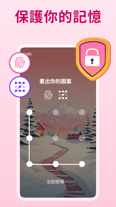 - 設定別針、圖案、保險箱或指紋,保護您的秘密!