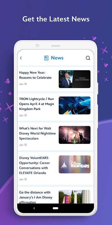 Disney employees and Cast: access features from the Disney HUB on the go.