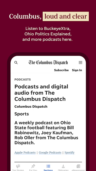 • The Columbus Dispatch app is free to download, and all users can access a sampling of free articles every month.