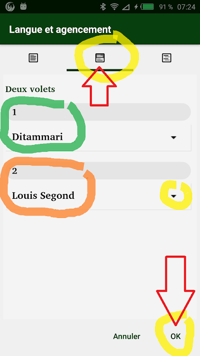- "two panes" to display the Ditammari at the top and the French or English version at the bottom