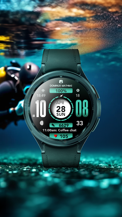 Personalized watch face design by Dominus Mathias for Wear OS tech. It aggregates all important information like time, date, health data, and battery charge level. Take your pick from many vibrant colors. To gain a complete picture of this watch face, check the full description and images provided.