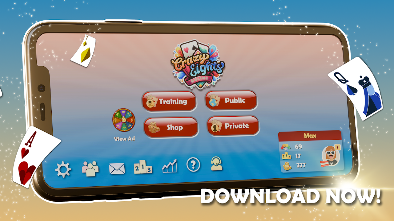 免費在線玩這款深受喜愛的紙牌遊戲💻 使用 Crazy 8 應用程式與朋友一起重溫真正紙牌遊戲的樂趣和刺激! 🎉