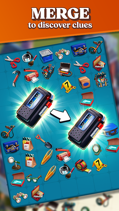 - MERGE items to find clues and collect evidence in this relaxing puzzle