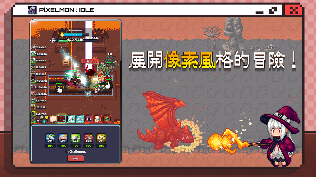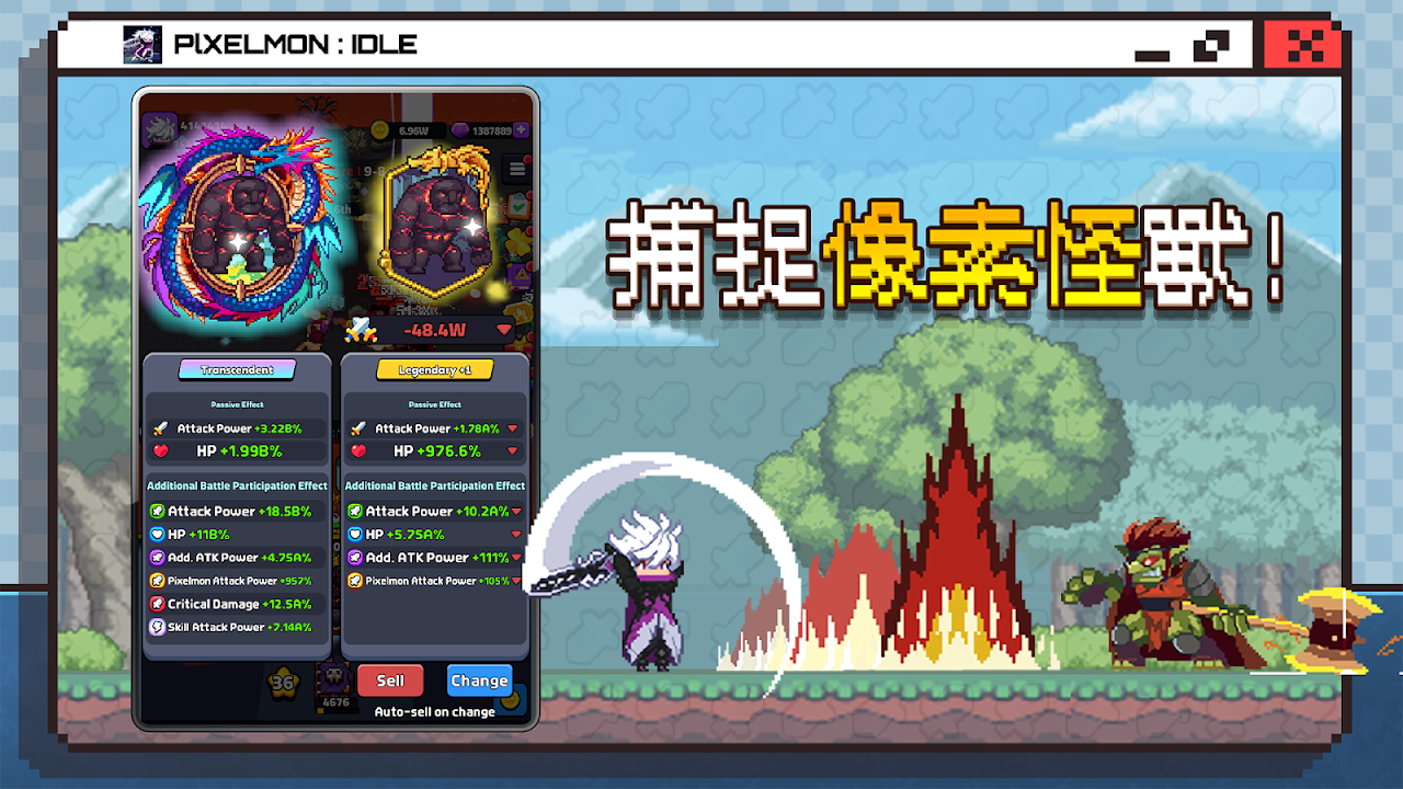 - 無限強化像素怪獸,並使用多樣的裝備和技能,讓牠們變得更強大。