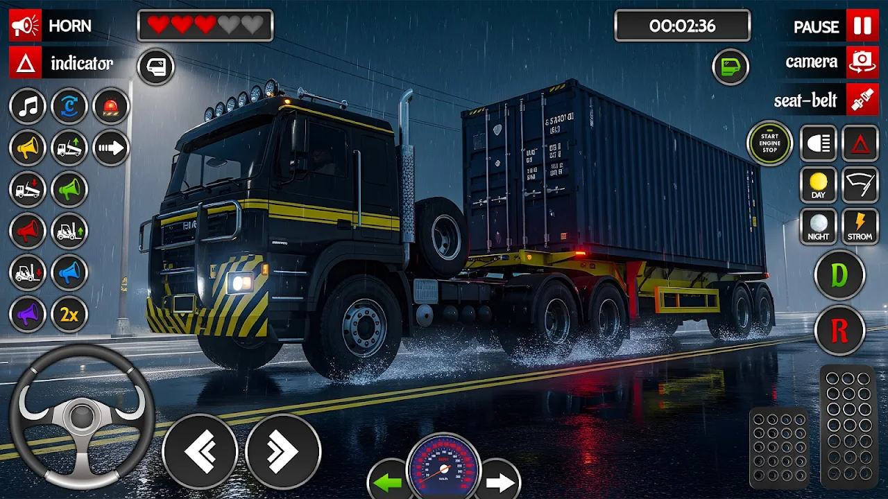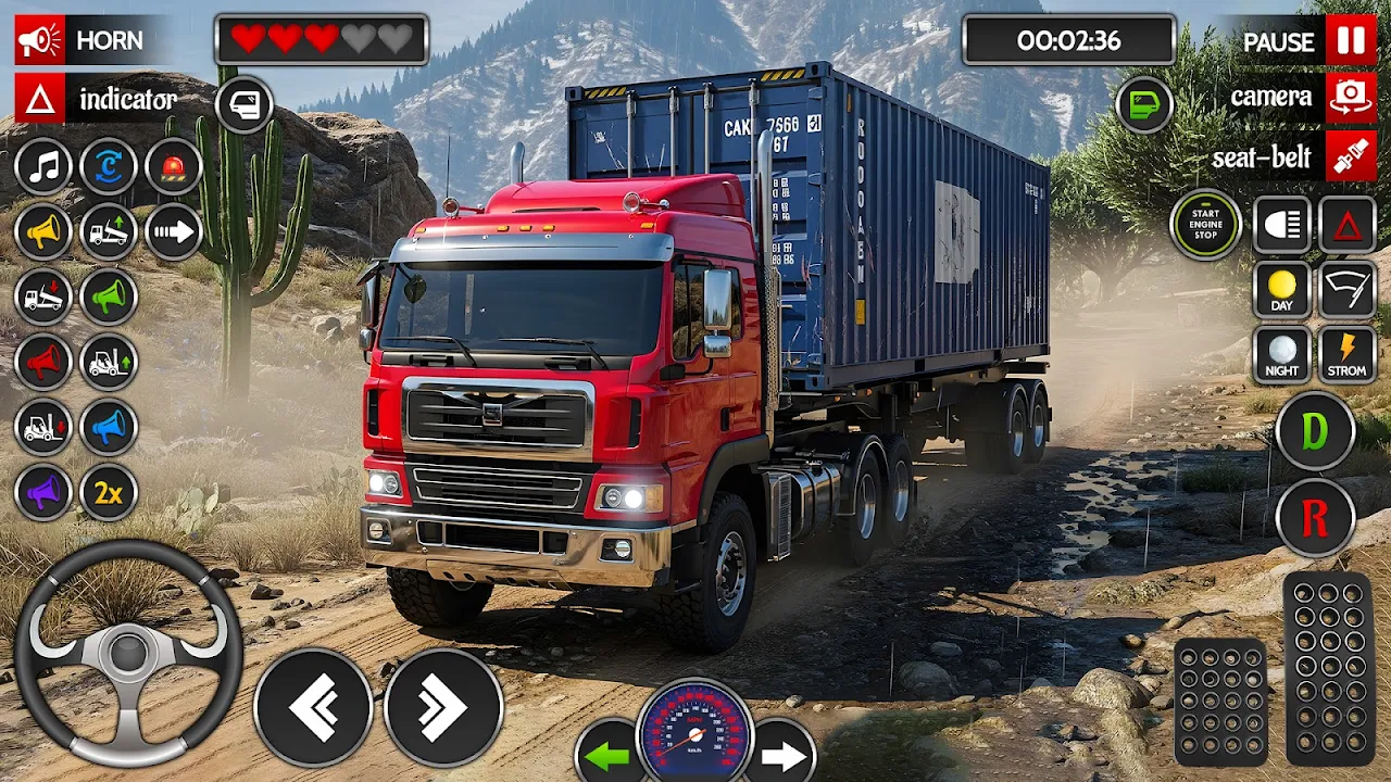 🎮 Realistic Truck Driving Controls – Steering, Button, and Tilt Options