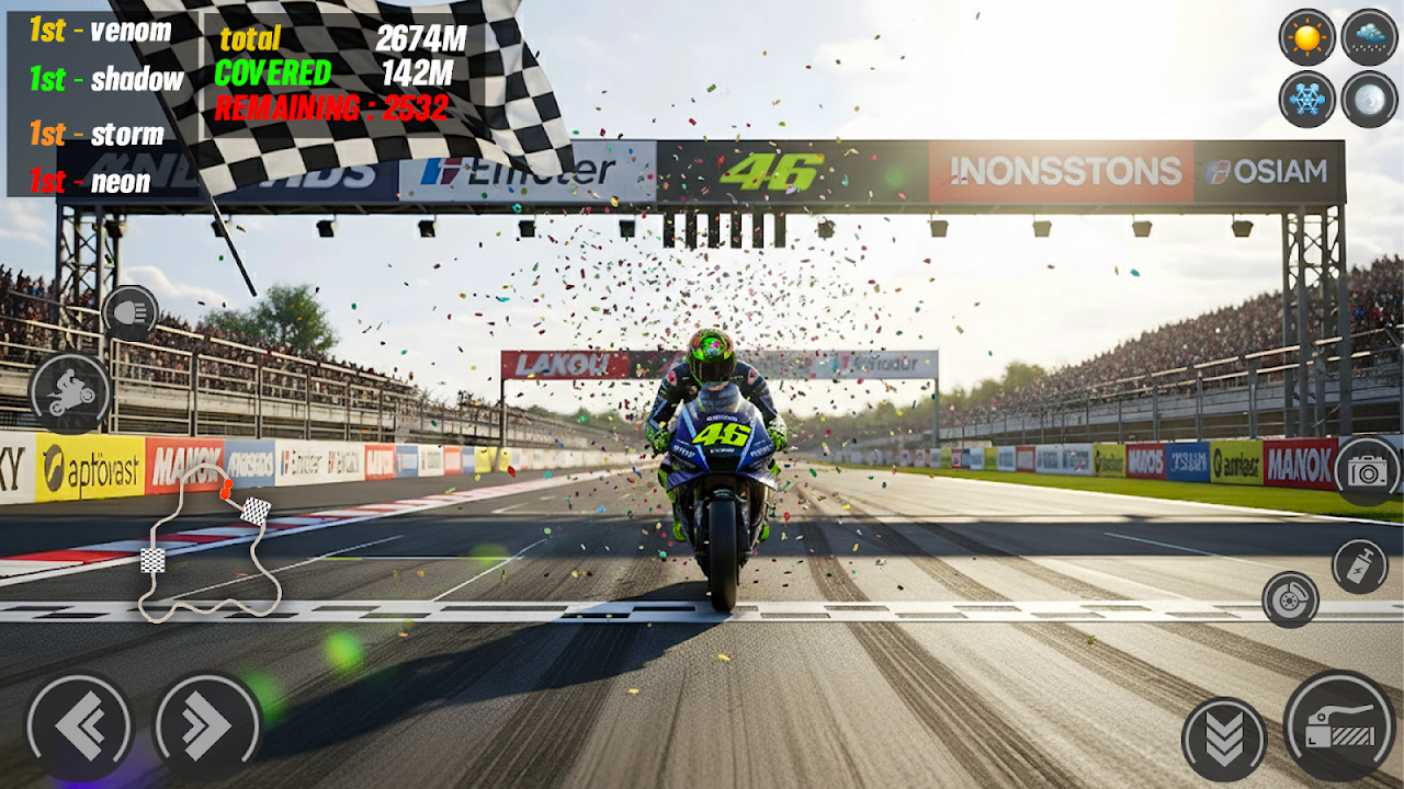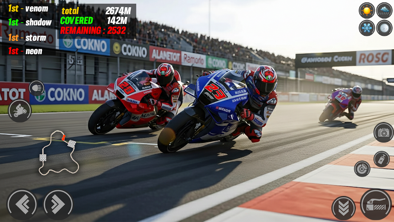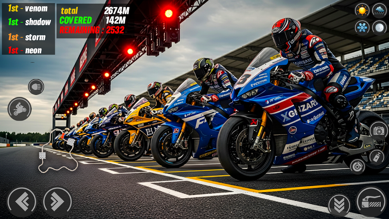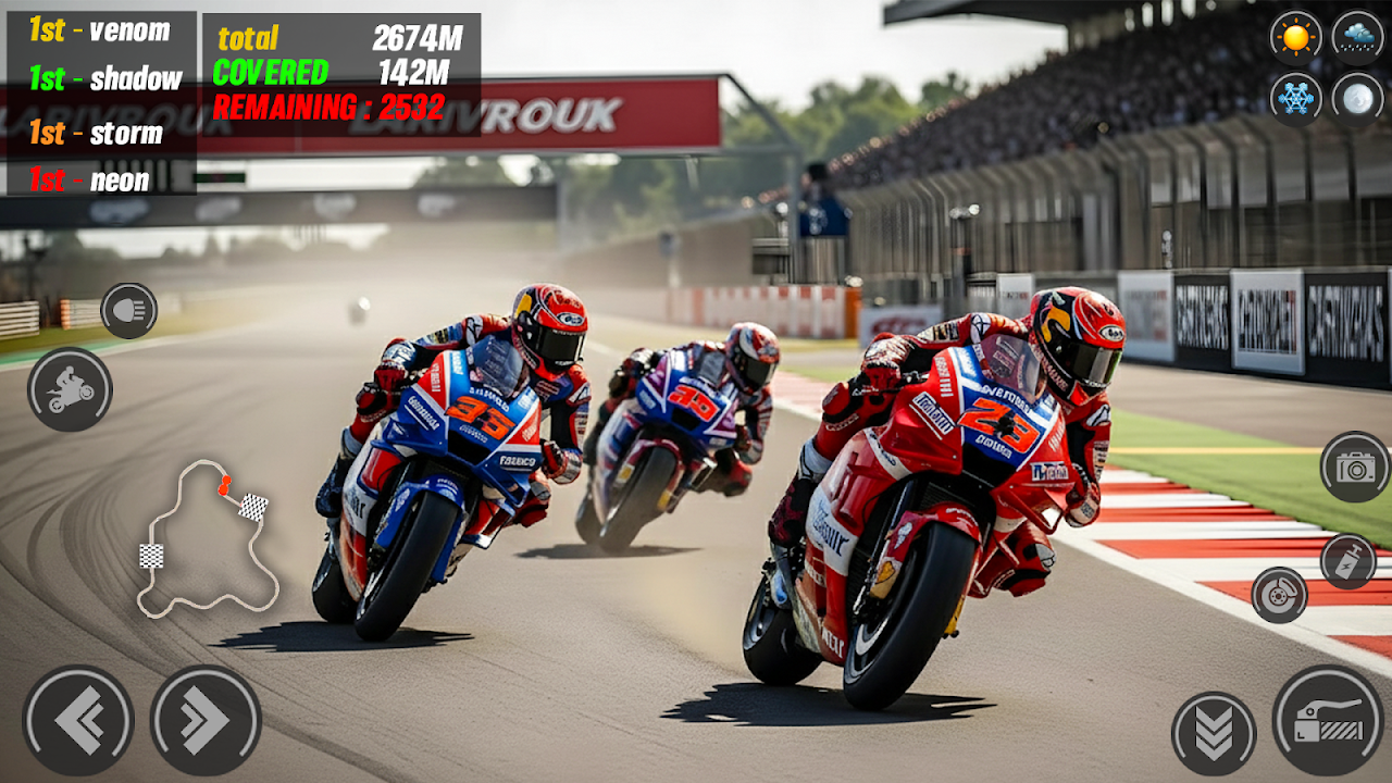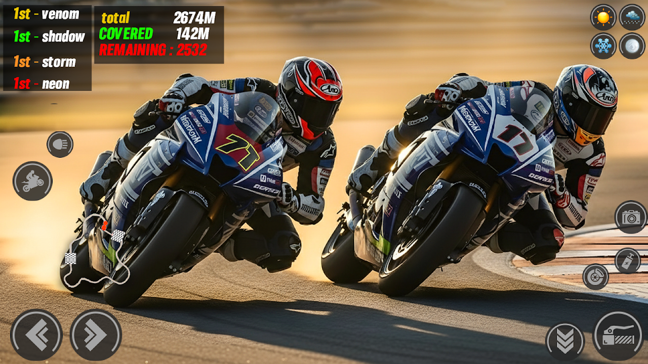 准备好迎接这款超级摩托车赛车游戏吧!速度、技巧和刺激在充满挑战的赛道上交相辉映!体验逼真的摩托车驾驶体验,流畅的操控、强劲的超级摩托车和动态环境。无论您是休闲玩家还是真正的摩托车骑手,这款摩托车模拟器都能为您带来无尽的乐趣和刺激。