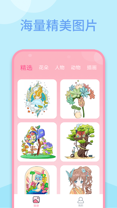 - 多种主题供你选择:人物、动物、花卉、插画等;