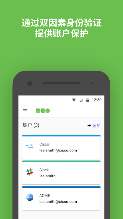 Duo Mobile 与 Duo Security 的双因素身份验证服务配合使用,使登录更安全。该应用生成用于登录的密码,并可以接收推送通知,实现简单的一键式身份验证。