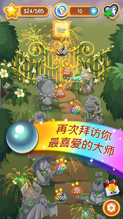 每天都可完成日常挑战,转动轮盘,赢取迷人的奖励。在各个关卡中冲击高分,赢得丰厚奖励,享受这款深受数百万人喜爱的泡泡射击游戏。