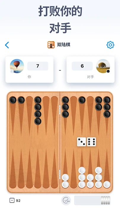- 从简单的对手开始,当你在成为双陆棋之王的道路上练习时,得面对更坚强的对手。