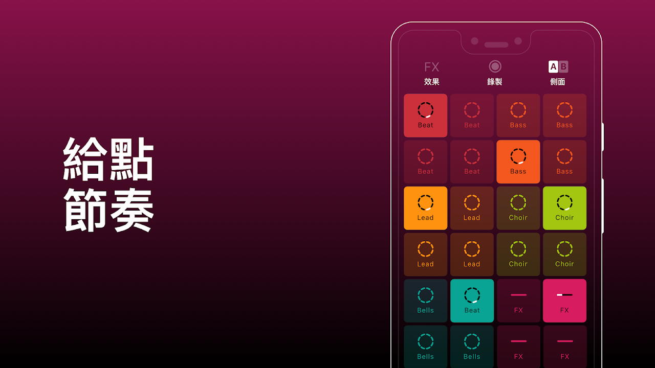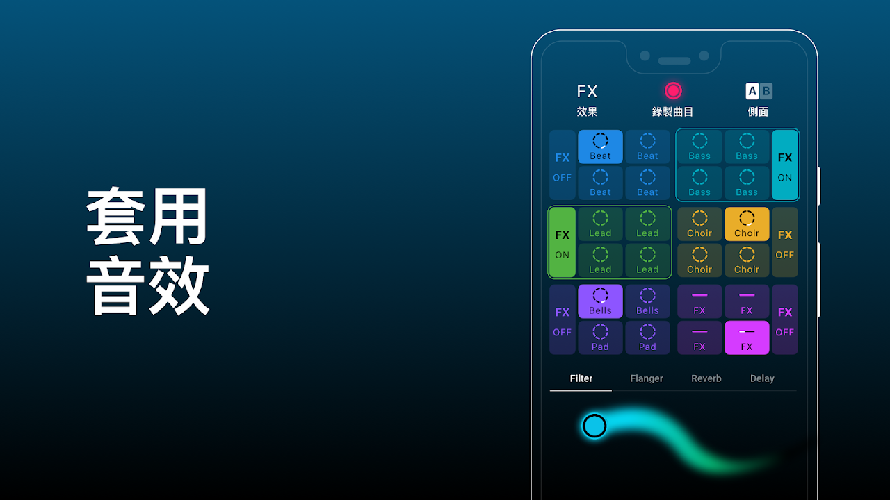 - 擁有濾波器、鑲邊、混響和延遲等超棒特效,您只需打擊板應用程式裡的音樂就能重新炒熱派對氣氛