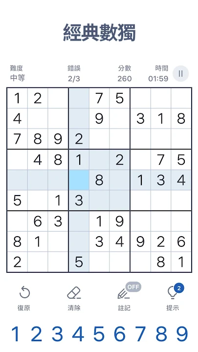 我們的免費數獨益智遊戲有一些功能,讓這款數字益智遊戲玩起來更容易:提示、自動檢查,以及標記重複數字。此外,在我們的應用程式中,每個經典數獨益智遊戲都只有一個答案。無論您是第一次玩數獨,或已進入專家難度,都能找到所需的一切。選擇任何您想要的難度!