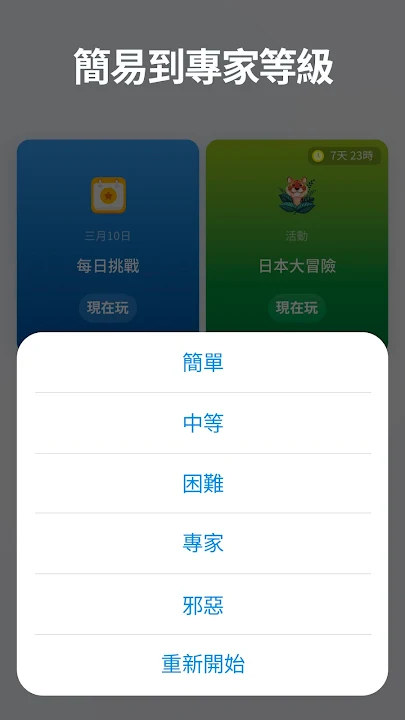 •6 個完美平衡的難度。這款免費數獨遊戲適合數獨初學者和高階的數獨殺手級玩家!遊玩快速、簡單和中等難度來鍛鍊您的大腦。選擇困難數獨來提升您的技巧,並嘗試專家或大型數獨謎題來面對邪惡的挑戰。