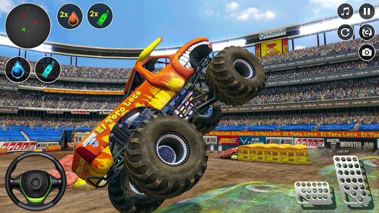 在两种刺激的模式——特技和爆破——中驾驶强大的怪兽卡车,每种模式都包含 5 个惊险关卡。在特技模式下,您可以在巨型坡道上表演跳跃、翻转和各种高难度特技。在爆破模式下,您可以在充满爆炸的场地中撞击、粉碎并摧毁车辆和障碍物。