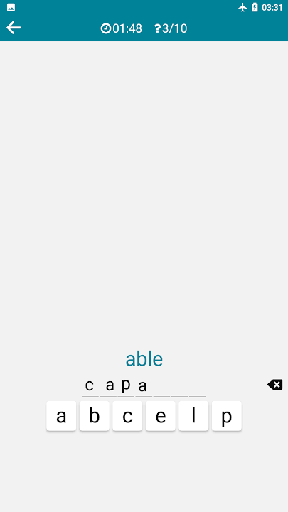 • A puzzle waiting for you to find a word by selecting the first and last letters of the mixed letters.