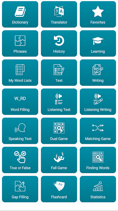 • You can learn while having fun in your spare time by trying to find the 16 words mixed in a table and their equivalents.