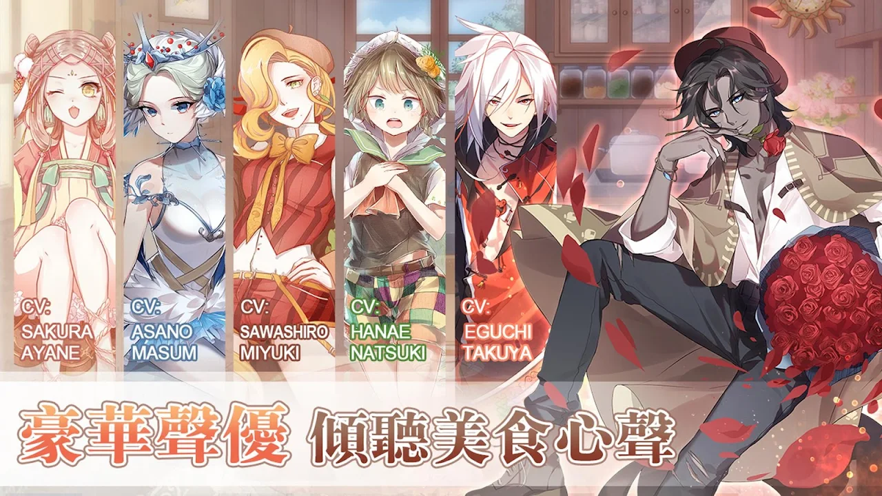 日本頂級聲優助陣,帶來不一樣的聽覺體驗!澤城美雪、花江夏樹、江口拓也、佐倉綾音、村瀨步、小野賢章、川澄綾子、悠木碧等傾力加盟,用聲音賜予美食靈魂,傾聽美食心聲!