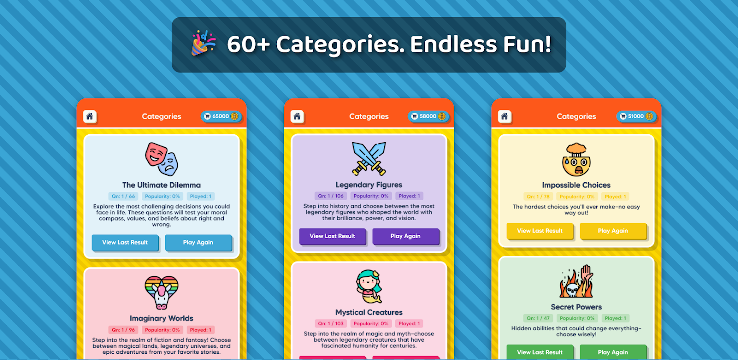 無論你是好奇、無聊,還是想挑戰自我——這款有趣的「This or That」測驗應用每次都能帶來歡笑和驚喜!