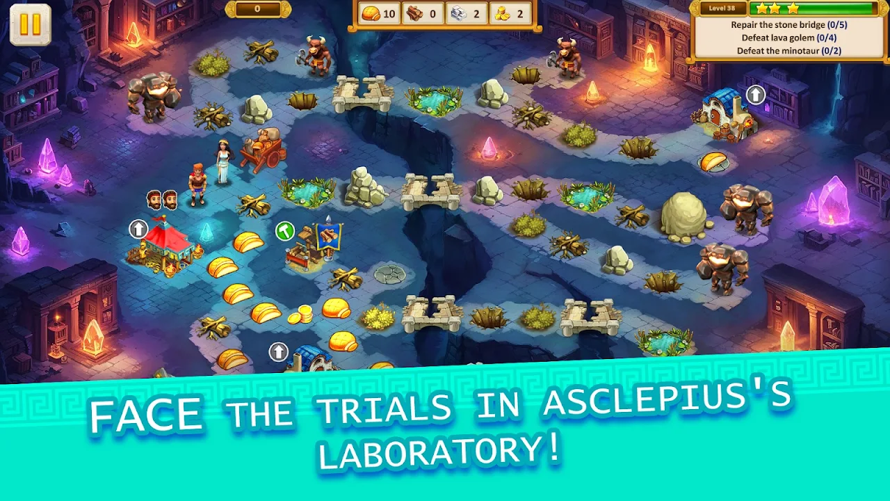 Jason and Medea are on a mission again: the famous relic collector Pelias asked them to retrieve the artifact that protects against Medusa's gaze. Without hesitation, the Argonauts set off on a journey to recover the artifact, save the cursed people, and find new friends. Explore the world, gather resources, and help the heroes lift the curse, using your time management skills and strategy to stop the curse and defeat the evil!