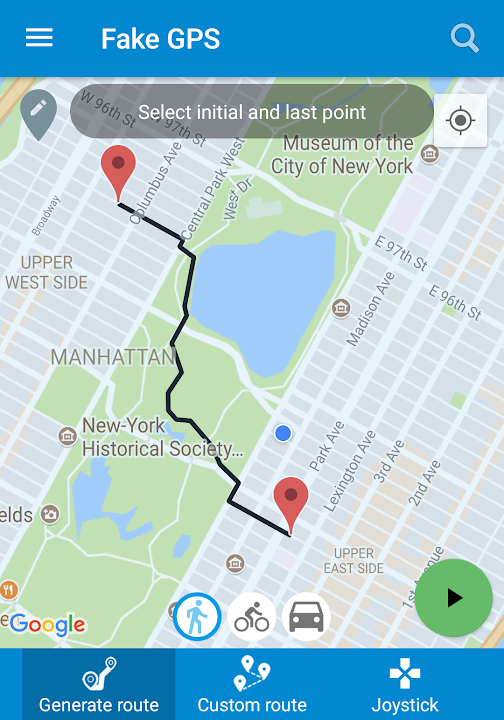 - 在地图上选择两个点来创建一个自动路线