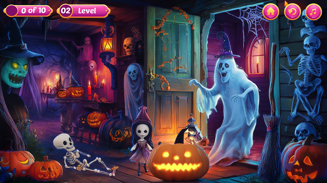Hidden Halloween Pumpkins is a thrilling hidden object game set in a spooky Halloween world. Dive into creepy locations filled with ghosts, haunted houses, and dark forests as you search for cleverly hidden pumpkins. Each level presents new challenges with intricately designed scenes, filled with mysterious items and clues to uncover. Sharpen your observation skills as you explore creepy environments, solve puzzles, and find all the hidden pumpkins before time runs out. Whether you're a fan of Halloween or love a good challenge, this game will keep you entertained with its chilling atmosphere and fun brain-teasers. Have a great time playing this hidden object game.