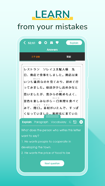- Experience each section following the format of the actual JLPT test.