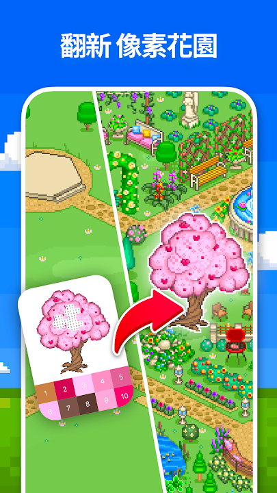 ✅ 認識全新的功能——花園!為獨特的物品塗上顏色,建造自己專屬的花園,並獲得獎勵。在 Pixel Art 中躍身新的元世界!