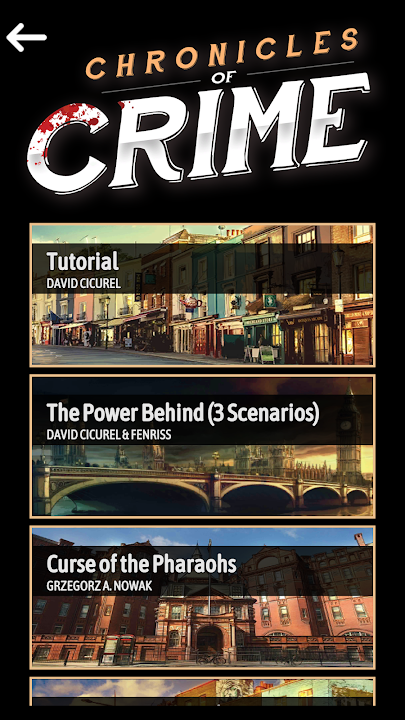 This application is a digital companion for the Chronicles of Crime board game.