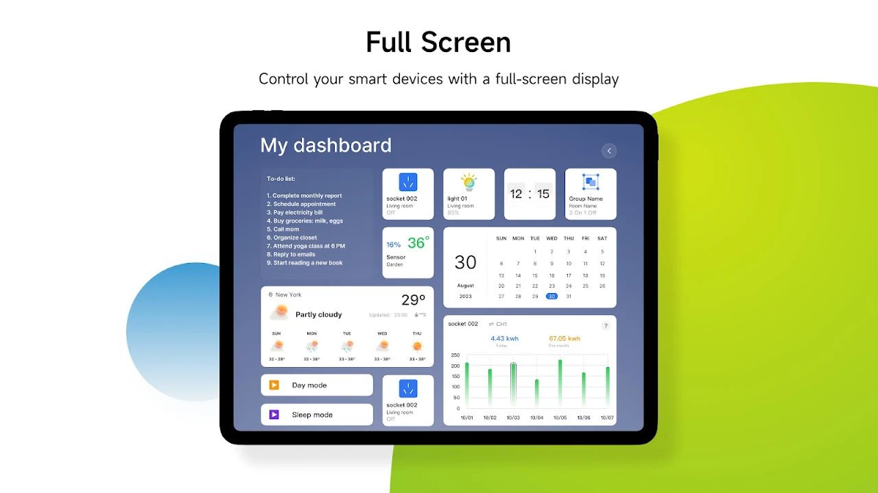 Access, control, and experience your smart home devices in a stylish dashboard.