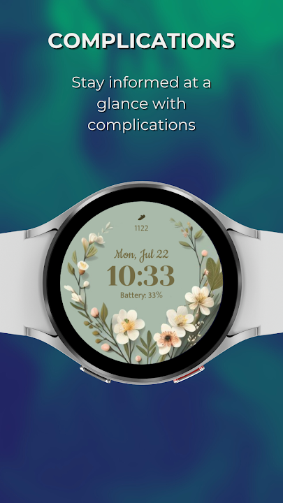 Transform your Wear OS smartwatch into a piece of art with the EXD068: Spring Flower Face. This beautifully designed watch face brings elegance right to your wrist with its delicate flower background that exudes tranquility. Stay on top of time with a sleek digital clock that supports both 12/24-hour formats according to your preference.