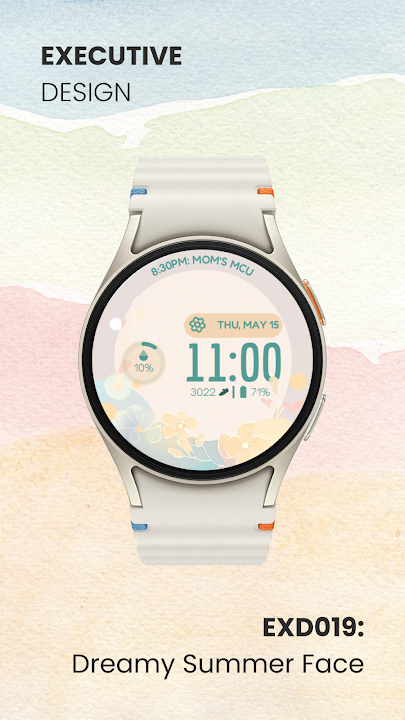 EXD019:Dreamy Summer Face 与大多数在 Wear OS 3+ 平台上运行的智能手表兼容。购买前请确保兼容性。