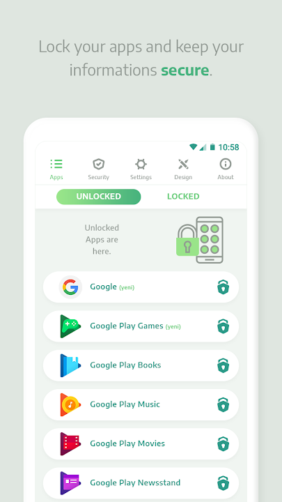Applock使用密码,图案,敲码锁定系统保护您的应用程序安全。确保可以在那些锁系统上使用指纹。