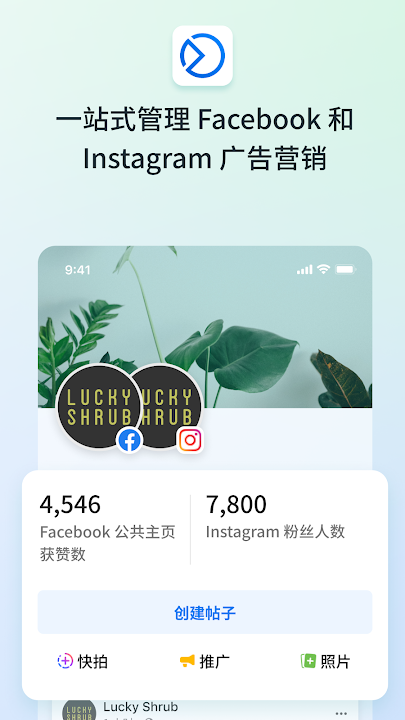 • 在 Facebook 公共主页和 Instagram 帐户创建及定时发布帖子和快拍并加以管理
