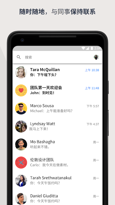 Workplace 聊天应用让你与同事随时随地都能联系。你可以使用已有帐户登录,或是在应用中直接新建帐户。