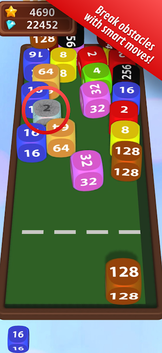 Dices 2048 3D 具有經典的 2048 遊戲玩法:匹配 2 個相同數字的方塊,將它們相加並創建一個數字更大的方塊。但這在 3D 中就沒那麼容易了!您不僅可以水平射擊方塊,還可以將它們堆疊在一起。而且它變得更具挑戰性!時不時會有巨大的石頭擋住你的路。你唯一能做的就是要么等到它們在幾次射擊後消失,要么使用威力強大的炸彈摧毀它們!
