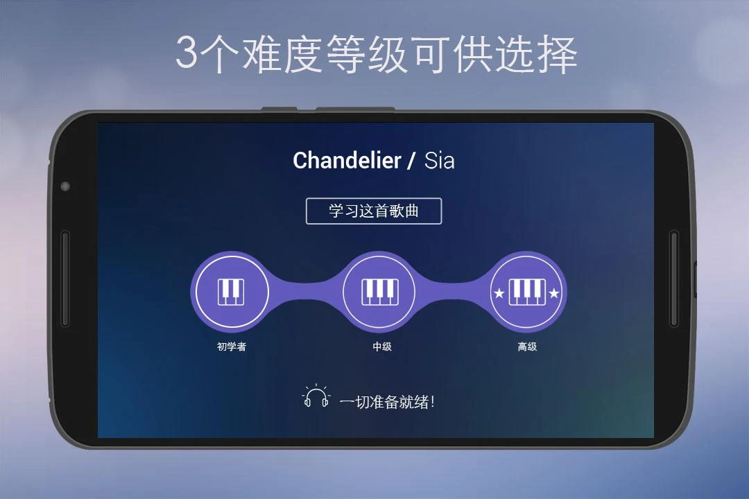 - 弹奏每首歌曲都有3个难度等级(初级,中级,高级)