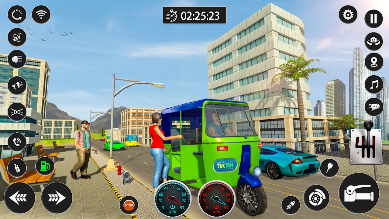 嘟嘟汽车人力车驾驶的激动人心的旅程将带您在现代汽车人力车驾驶游戏的世界中进行不同级别的疯狂和具有挑战性的冒险。 驾驶嘟嘟车自动人力车避开城市交通障碍,到达城市自动人力车乘客的目的地。 不要避免在您的汽车人力车上表演特技,小心驾驶并继续移动到城市汽车客运人力车司机游戏地图上标记的目的地,因为接送服务时间有限。 在这个嘟嘟车自动驾驶人力车游戏 3d 中,利用城市人力车公共交通司机和越野赛车在繁忙的高速公路上小心驾驶。 你的工作是协助城市里的人们乘坐公共交通人力车,并提供接送服务。