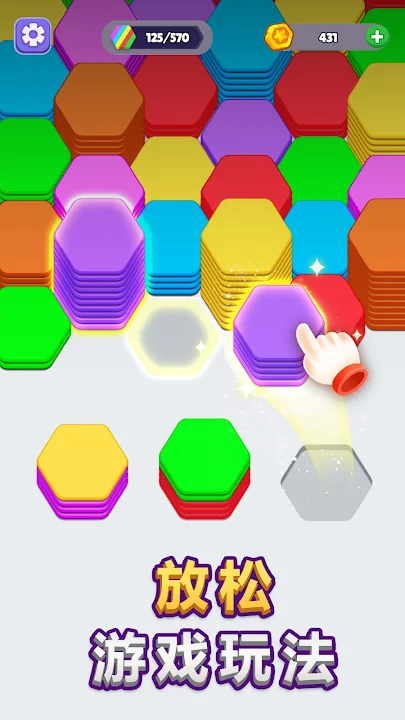 六邊形排序拼圖遊戲非常適合放鬆或鍛鍊大腦。憑藉舒緩的音效和美麗的視覺效果,它不僅僅是一款遊戲——它是一種有趣的放鬆方式。準備好玩六邊形排序拼圖遊戲了嗎?立即下載,加入六邊形堆疊的樂趣吧!"