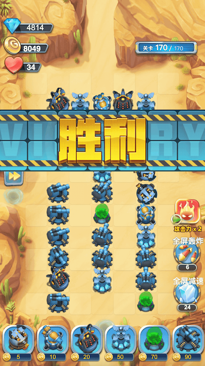 放置策略塔防游戏,机甲战争守卫战.布置防御,搭配策略,消灭入侵的军团!