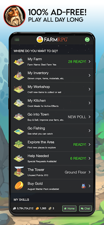 Farm RPG is a game about choice and making money. There are many ways to invest and grow your farm to increase your profits. The community loves to help players in terms of how to play, best things to do first, and more.
