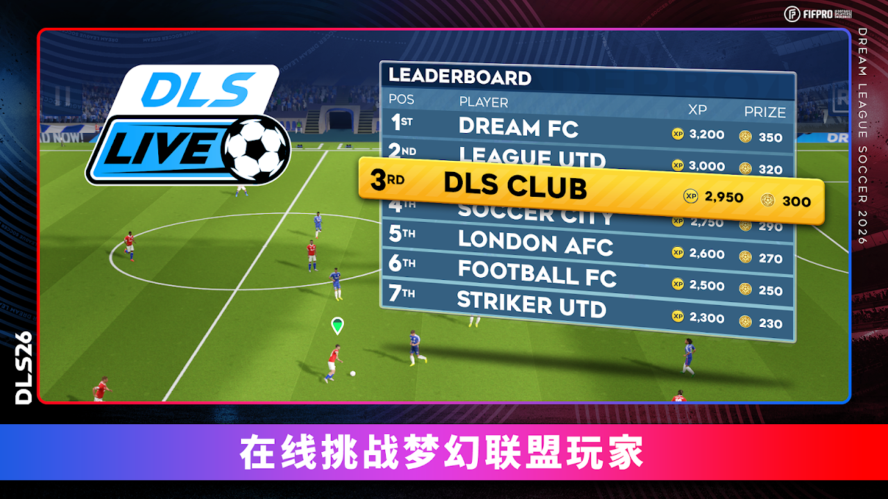 Dream League Live 让你的俱乐部迎战来自世界各地的强队。努力通过排行榜证明你的球队实力,并在全球排行榜和活动中争夺独家大奖!